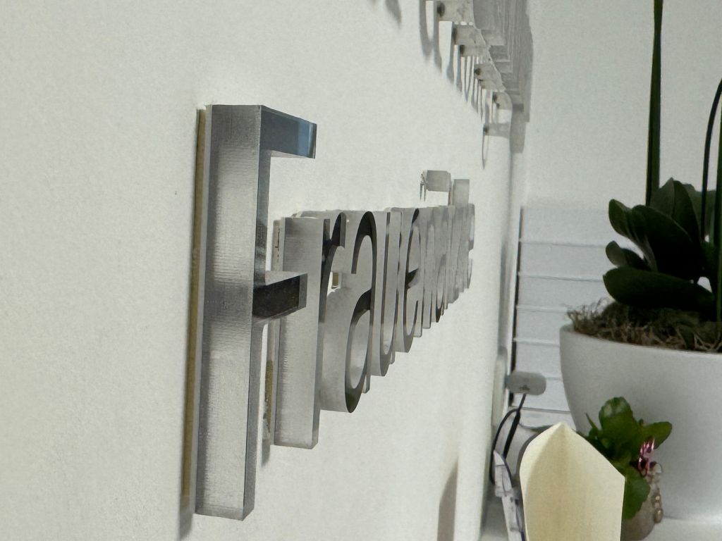 Neben klassischen Schriftzügen sind auch spezielle Formen, Logos oder grafische Elemente problemlos umsetzbar. Durch die computergestützte Frästechnik erreichen wir höchste Genauigkeit und eine gleichbleibend hohe Qualität, ideal für Firmenbeschilderungen, Wanddekorationen, Messestände oder Schaufenster. Für die Montage bieten wir verschiedene Lösungen an: wahlweise mit doppelseitigem Klebeband für glatte Flächen oder mit Abstandshaltern für eine professionelle Wandbefestigung mit Tiefenwirkung.