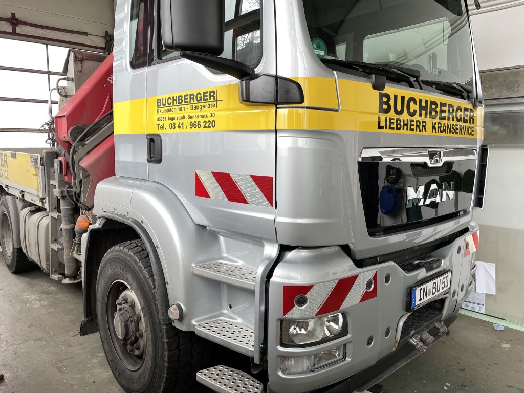 Wir können LKW´s und Trailer bis 15m Länge und 4m Höhe in unserer Halle beschriften. Zudem bieten wir einen Hol- und Bringsservice bis 40 Tonnen an. Wir holen Ihr Fahrzeug beim Händler ab und bringen es fertig Beschriftet zu Ihnen. Das verkürzt erhelblich Standzeiten Ihres Firmenfahrzeuges.
